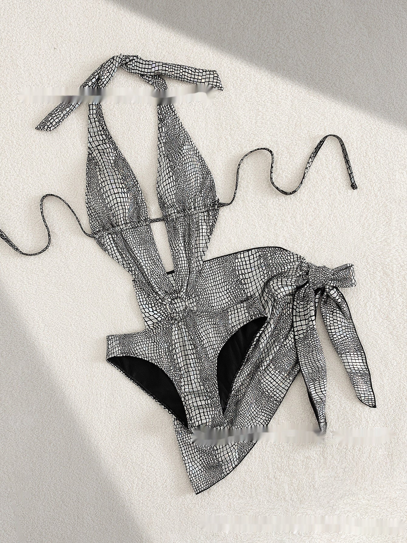 Beach Hot Spring Serpentine V-neck One Piece Swimsuit Lace-up