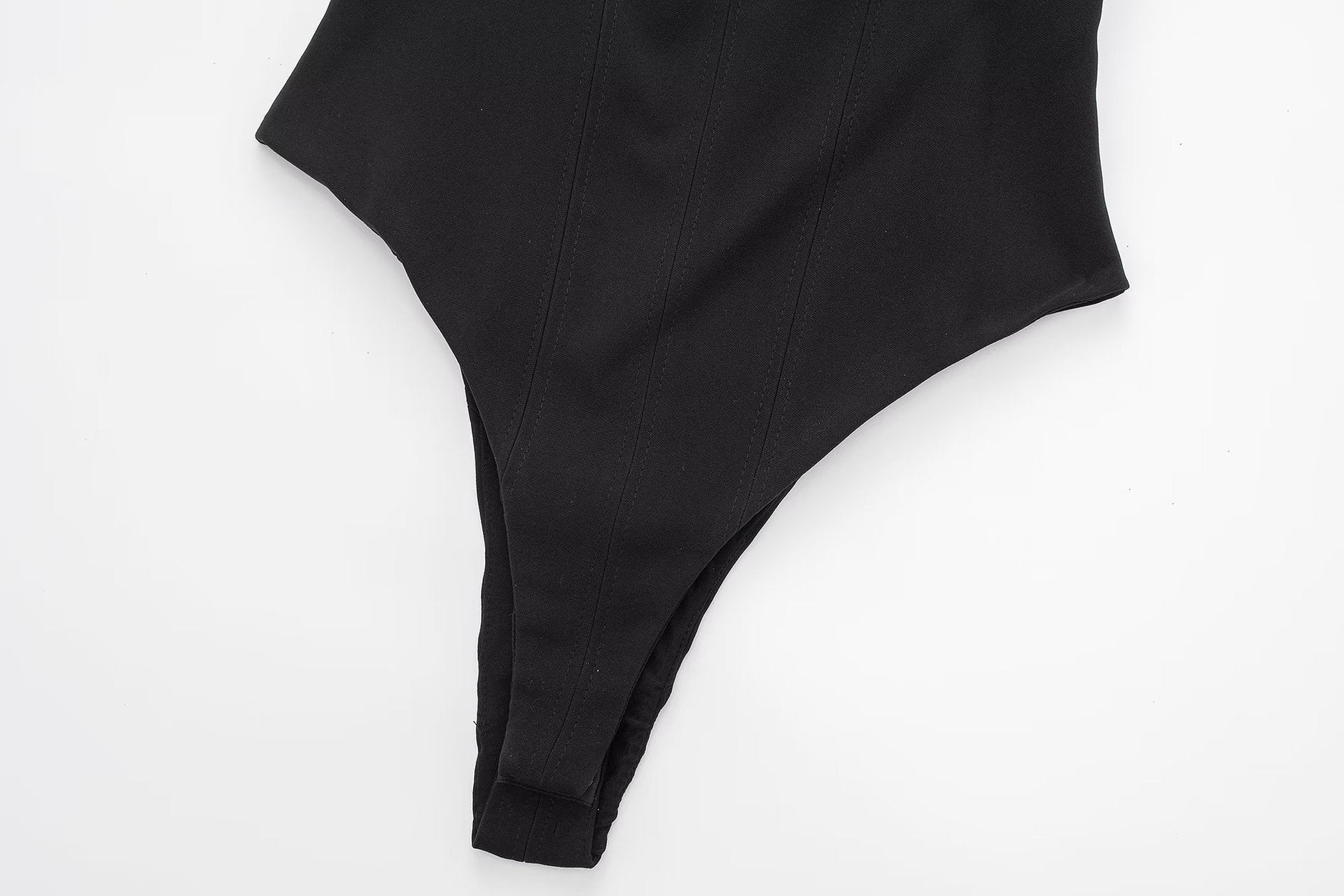 Black Heart Shape Collar Off-the-shoulder Design Jumpsuit