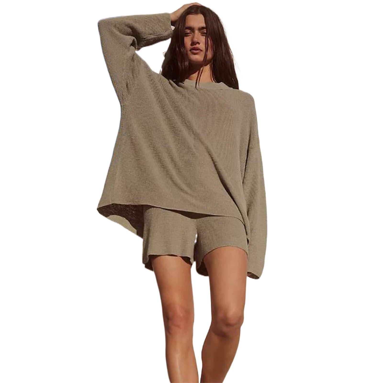 Casual Multicolor Long Sleeve Shorts Knitting Suit
