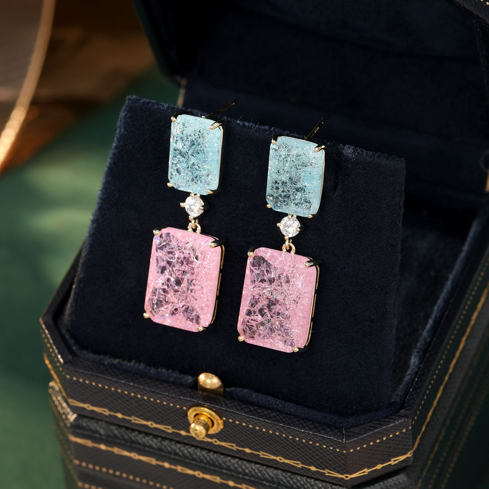Earrings Gem Super Shiny Exquisite Silver Needle Geometry