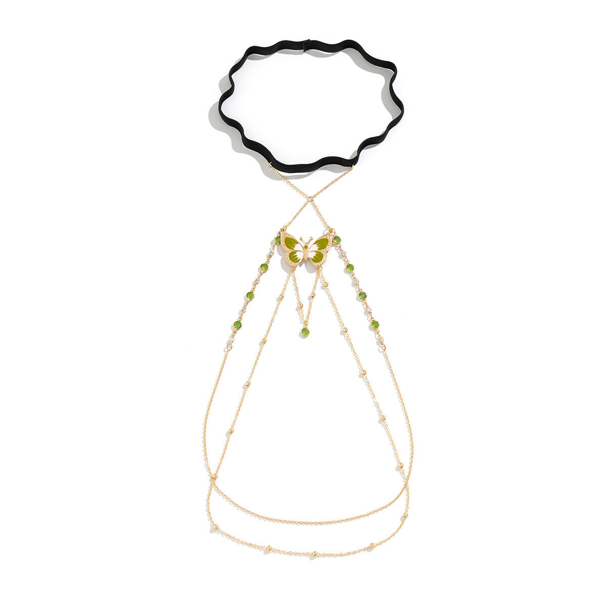 Elastic Band Leg Bracelet Green Painted Butterfly