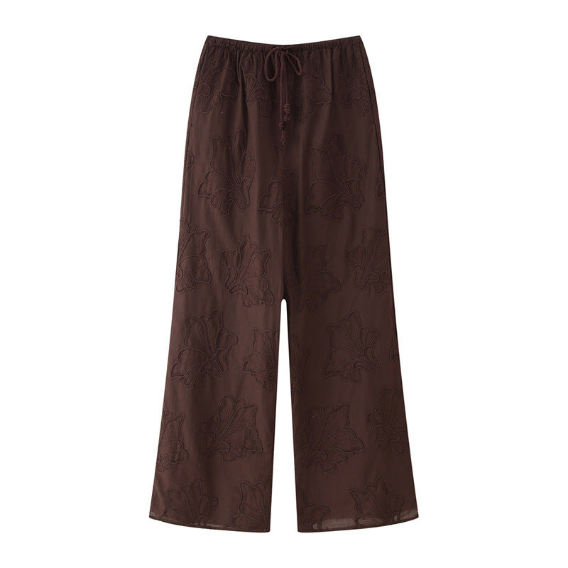 Embroidered Pajamas Style Top Pants Suit