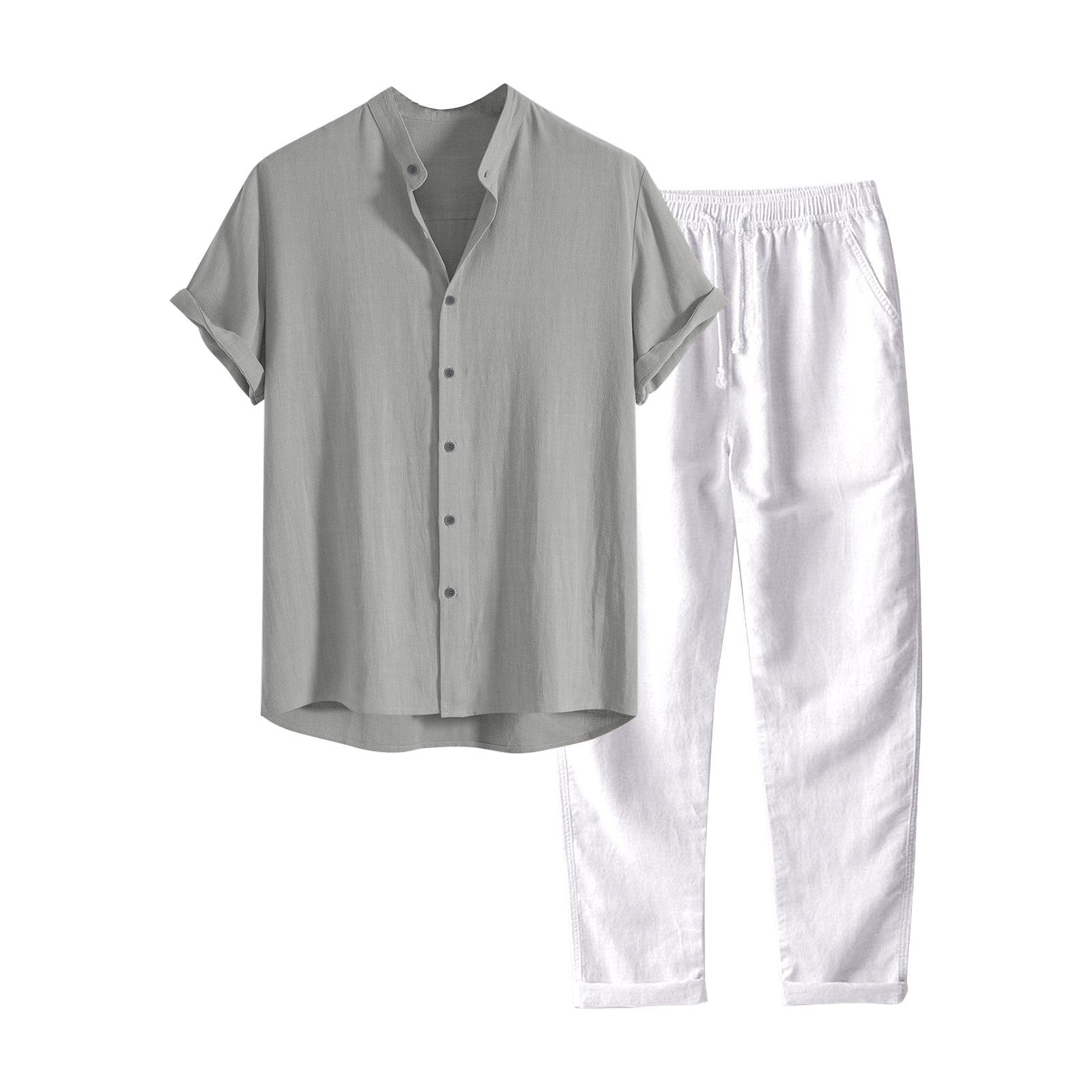 European And American Men's Stand Collar Fashion Casual All-match Slim Fit Cotton And Linen Suit