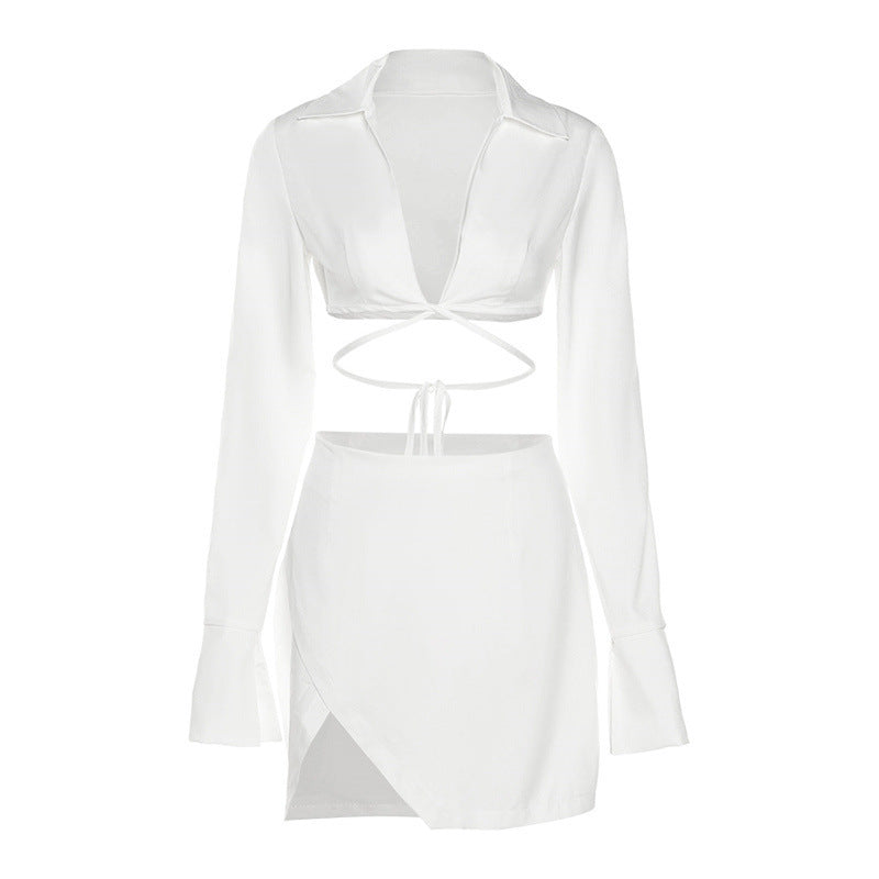 Fashion Cardigan Long Sleeve T Shirt Slim Slit Skirt Suit Women