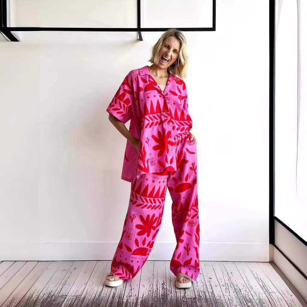 Fashion Casual All-matching Printed Cardigan Shirt Collar Suit Women