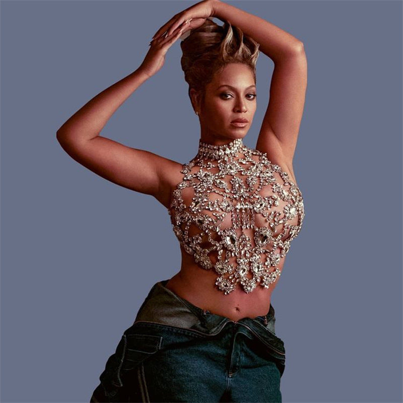 Fashion Luxury Rhinestone Flower Chest Chain