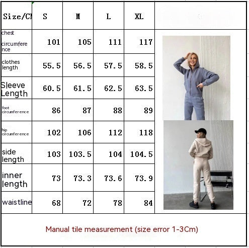 Fleece-lined Hooded Zipper Long-sleeve Sweater Set