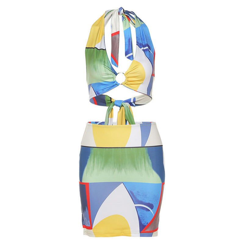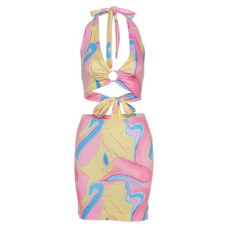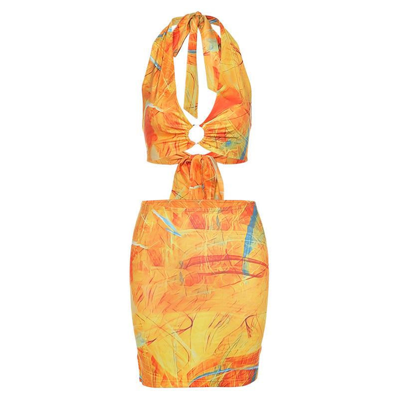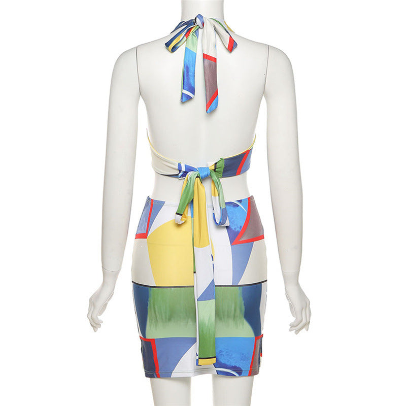 Halter Lace Sexy Low-cut Hip Skirt Suit