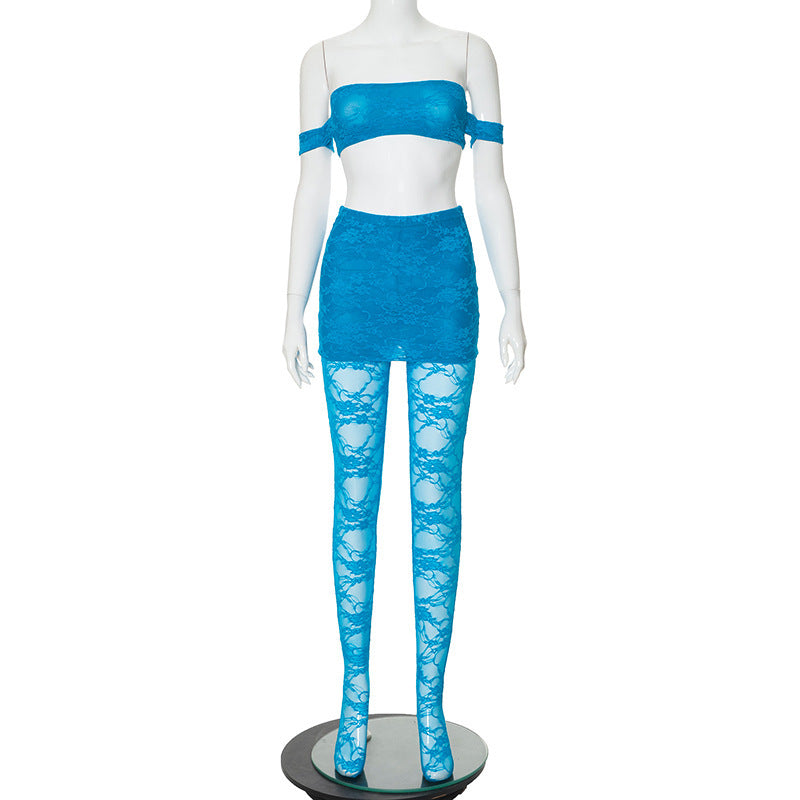 Lace Off-shoulder Vest Top Fake Two-piece Trousers Suit