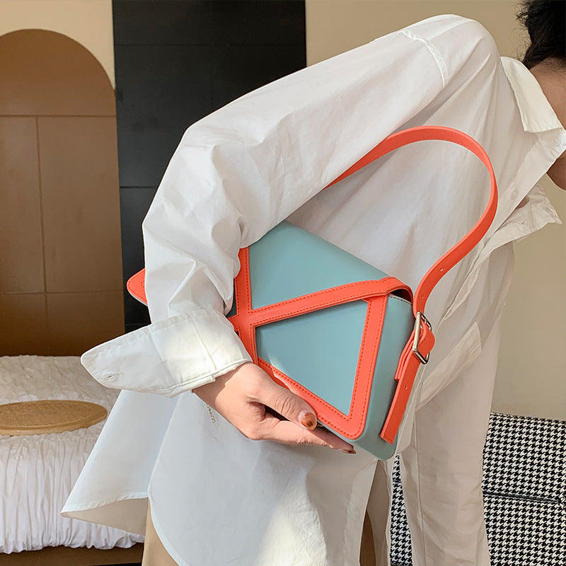 Panelled Trapezoid Underarm Bag Women High Quality Shoulder Bag Leather Luxury