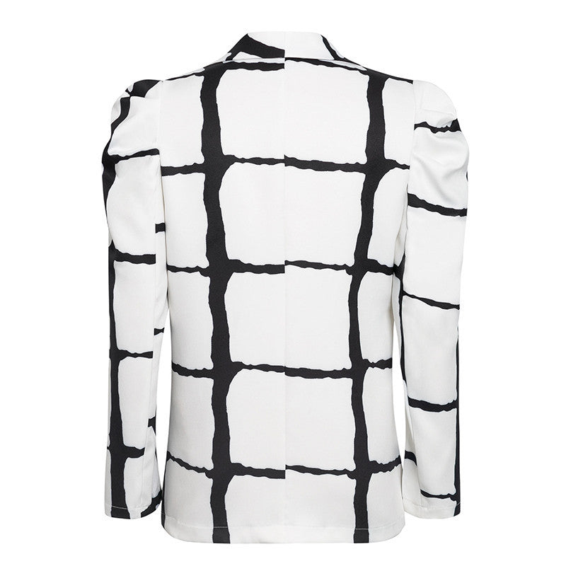 Plaid deep V-neck blazer