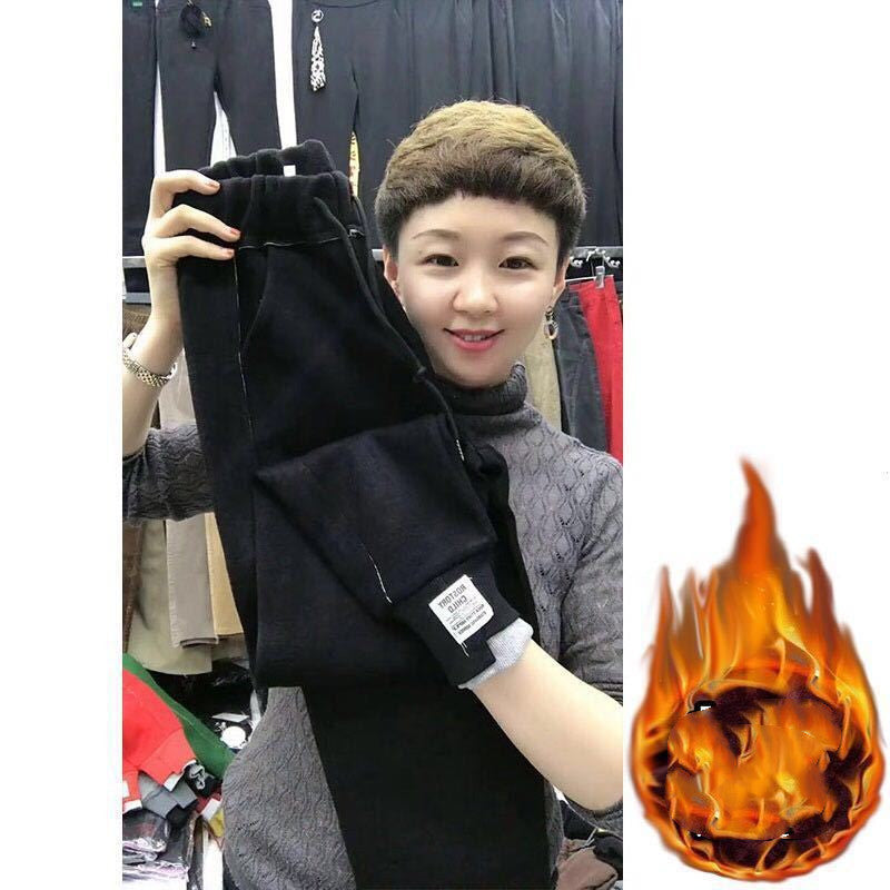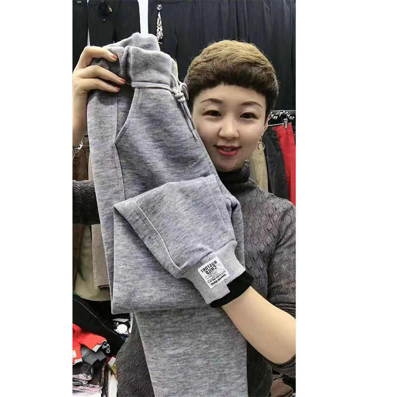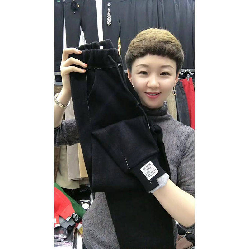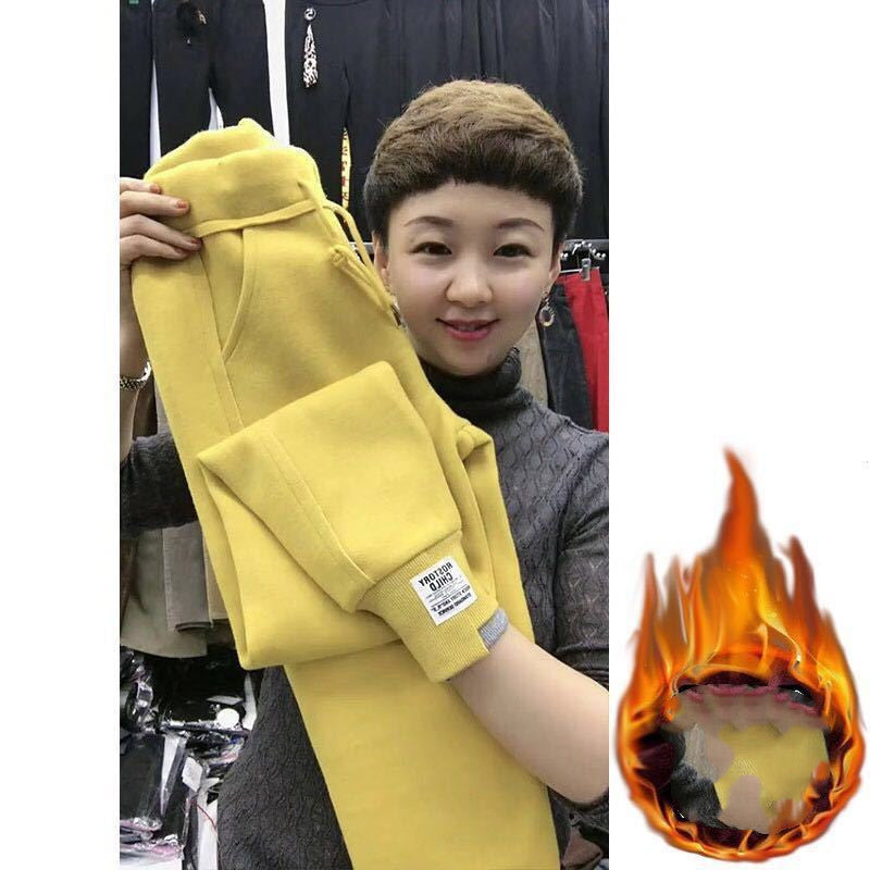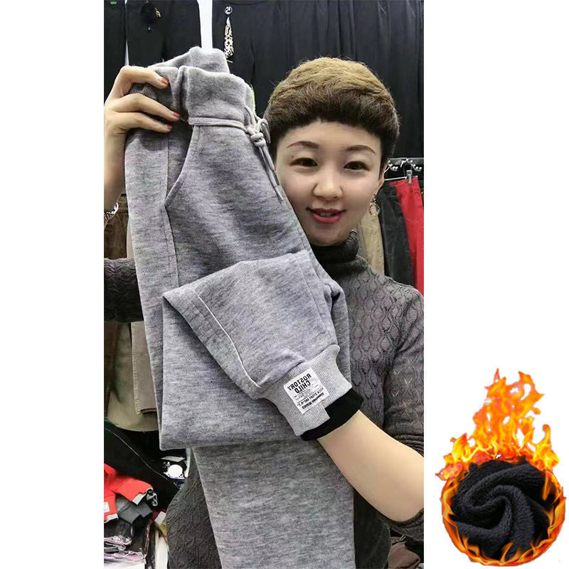 Plus Velvet Casual Pants Women's Elastic Waist Lace-up Trousers Are Thin And All-match