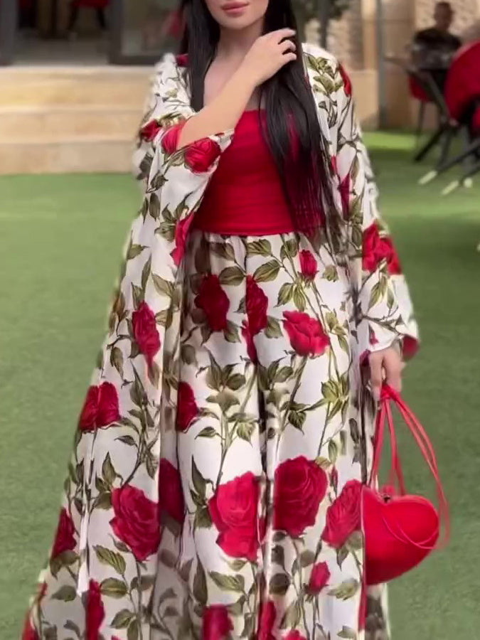 Printed Vest Cardigan Three-piece Wide-leg Pants Set