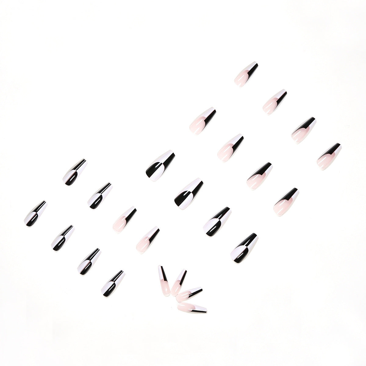 Simple Black And White Color Matching Long Nails Removable Nail Tip