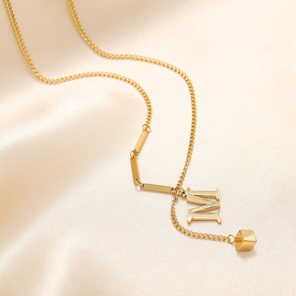 Simple M Shaped Small Square Pendant Necklace Womens Titanium Steel