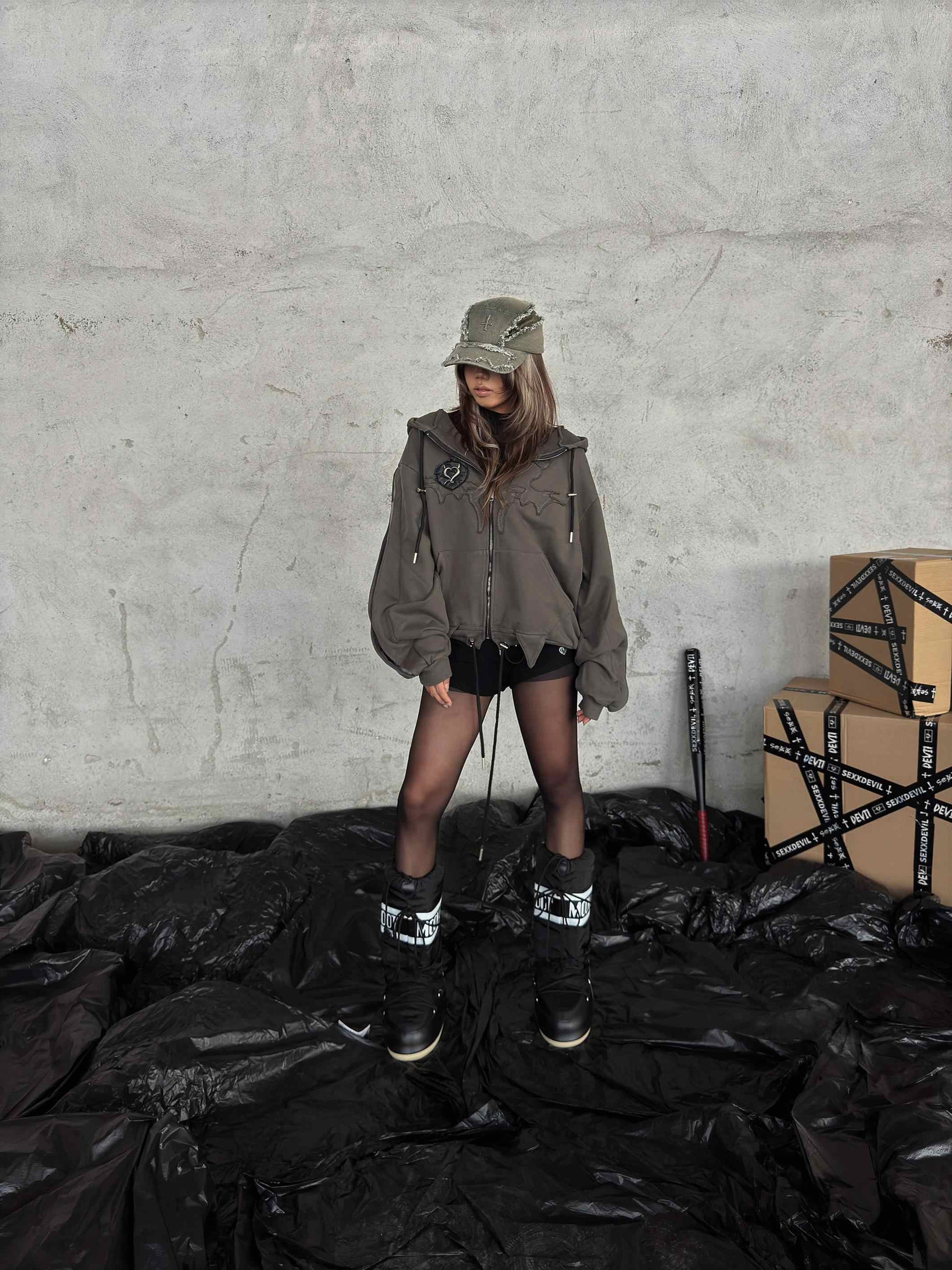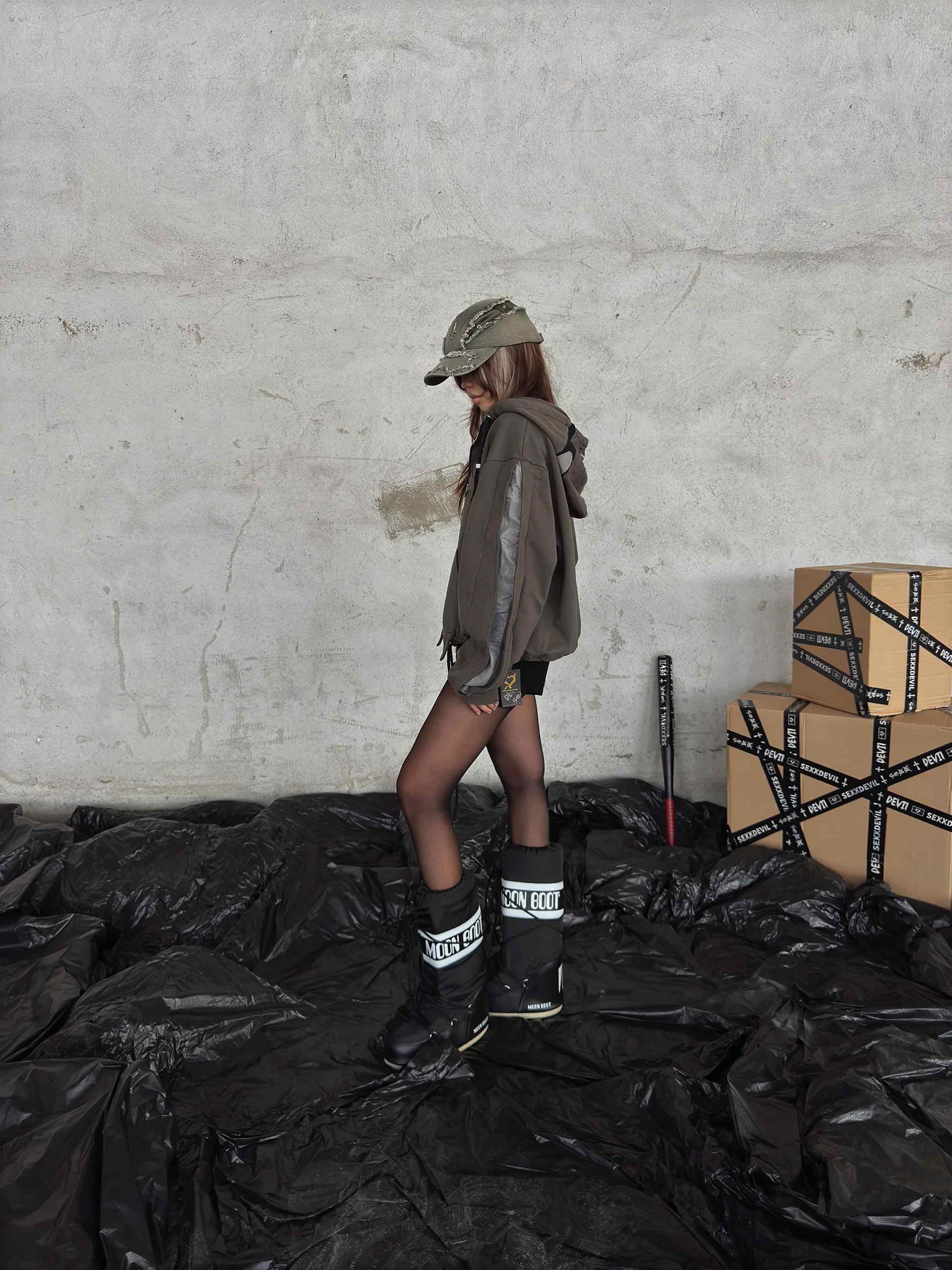 Washed Destroyed Leather Patchwork Denim Cross Baseball Cap
