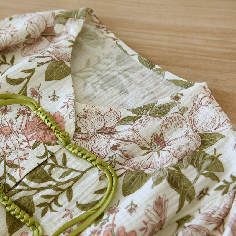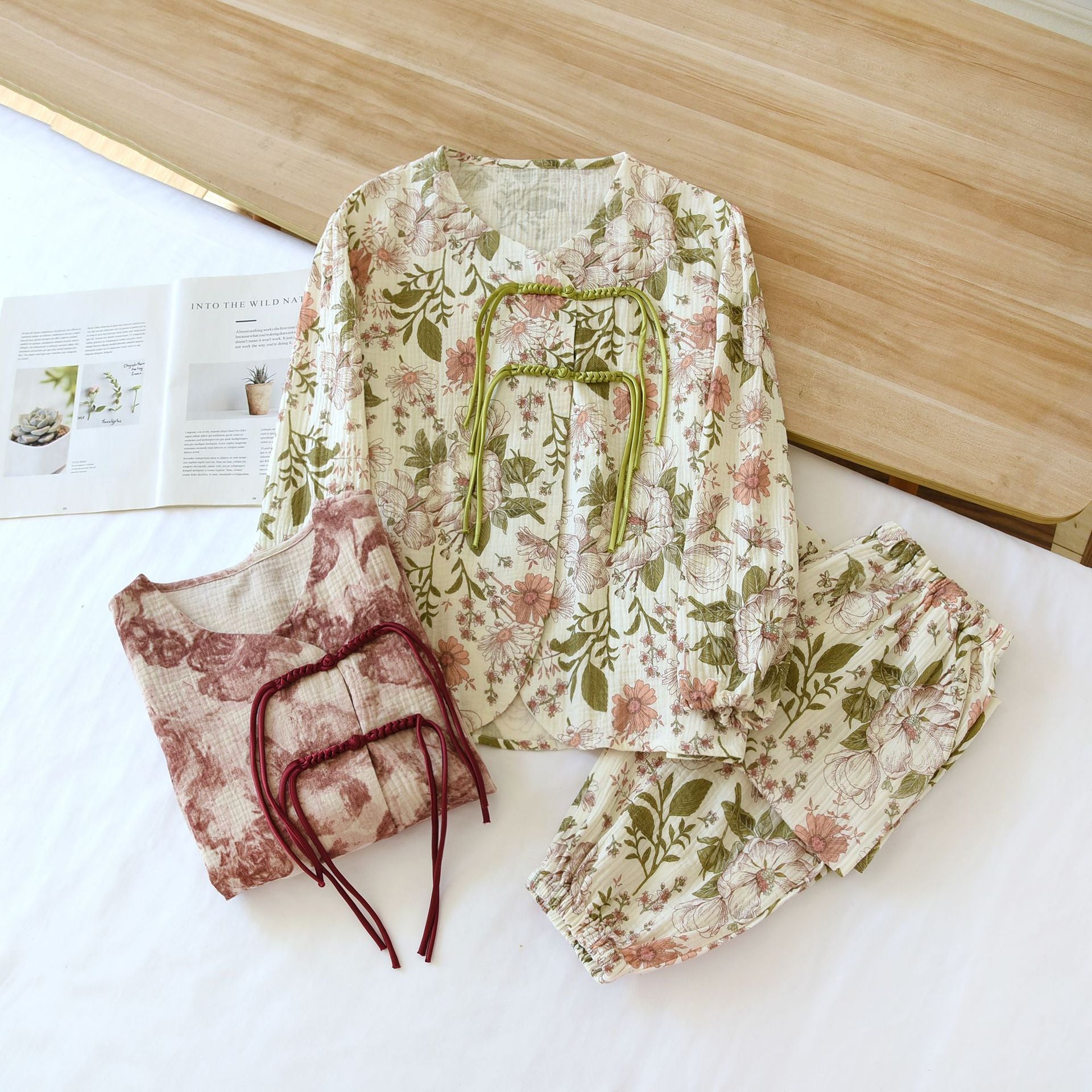 Women's Cotton Crepe Buckle Pajamas Suit Four Seasons Thin