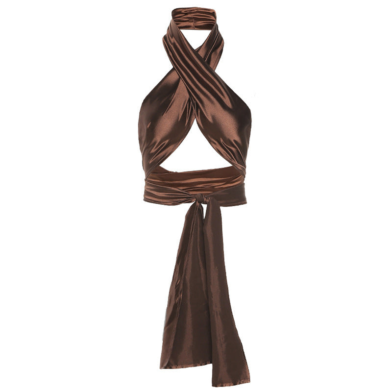 Women'S Design Sense Sexy Strappy Hanging Neck Halter Fashion Slim T-Shirt Women