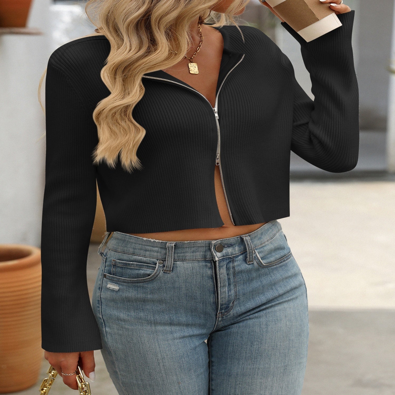 Women's Solid Color Long Sleeve Zipper Cardigan Sweater
